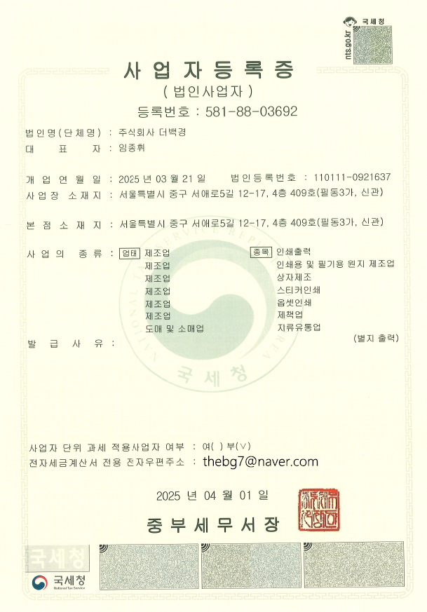 188*257 6,000부 / 중철날개제본 / 표지 목형+톰슨 표지 랑데뷰울트라210g 양면칼라 단면무광코팅 내지 랑데뷰울트라130g 양면칼라 16p